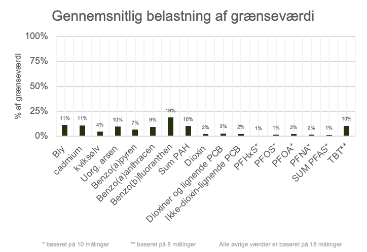 “Miljøfarlige stoffer findes i koncentrationer over miljøkvalitetskrav i næsten alle danske vandområder… Det kemiske pres på havmiljøet udgør en trussel mod biodiversiteten og potentielt mod menneskers sundhed.”